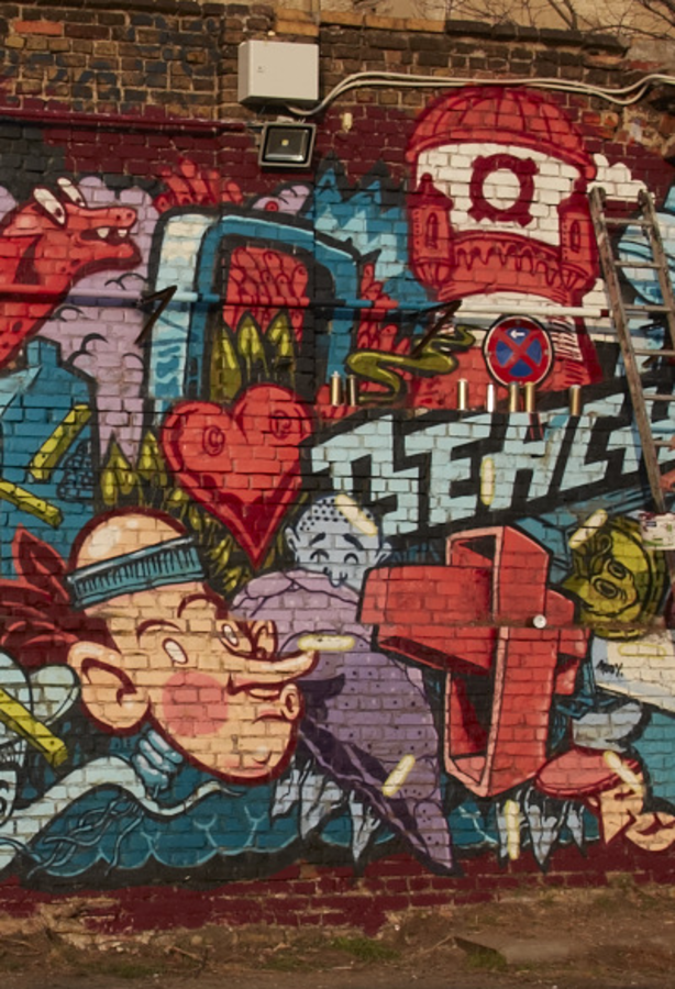 Wir hinterlassen Spuren – nicht nur im Leuchtendesign sondern auch in der Kunst. Wie hier in Berlin, im angesagten Subkultur Hotspot RAW. Gemeinsam mit den Streetart Künstlern Lars Wunderlich und Attila Szamosi von PEACH BEACH wurde von uns ein Grafittiprojekt umgesetzt, das sich wirklich sehen lassen kann. Bei strahlendem Sonnenschein und mit bester Laune kreierten die Künstler in nur 4 Tagen ein urbanes Kunstwerk mit jeder Menge Leuchten und unserer Botschaft: „From Belgium with Love". Damit setzten wir ein kosmopolitisches Zeichen, an dem sogar die amerikanische Fotojour- nalistin Martha Cooper nicht vor-bei gekommen ist. „Well done“ würden viele sagen.