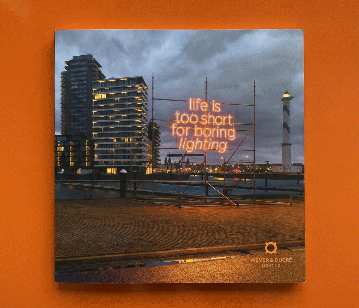 Man sieht ihn schon von weitem, den leuchtend-orangen Schriftzug, der seit kurzem von Ostende aus in die Welt strahlt: Life is too short for boring lighting. Hier, im alten Hafen der Stadt, der sich langsam in ein modernes Wohnviertel verwandelt, hat ihn Frederik Vercruysse wie eine Skulptur in Szene gesetzt und das, woran wir glauben für alle sichtbar festgehalten. Warum gerade in Ostende? Weil die Stadt, wie wir, ein bunter Mix verschiedener Kulturen, Menschen und Ideen ist und die Kunst mit internationaler Street-Art feiert. Wo unser Slogan als nächstes auftauchen wird? Lassen Sie sich überraschen.