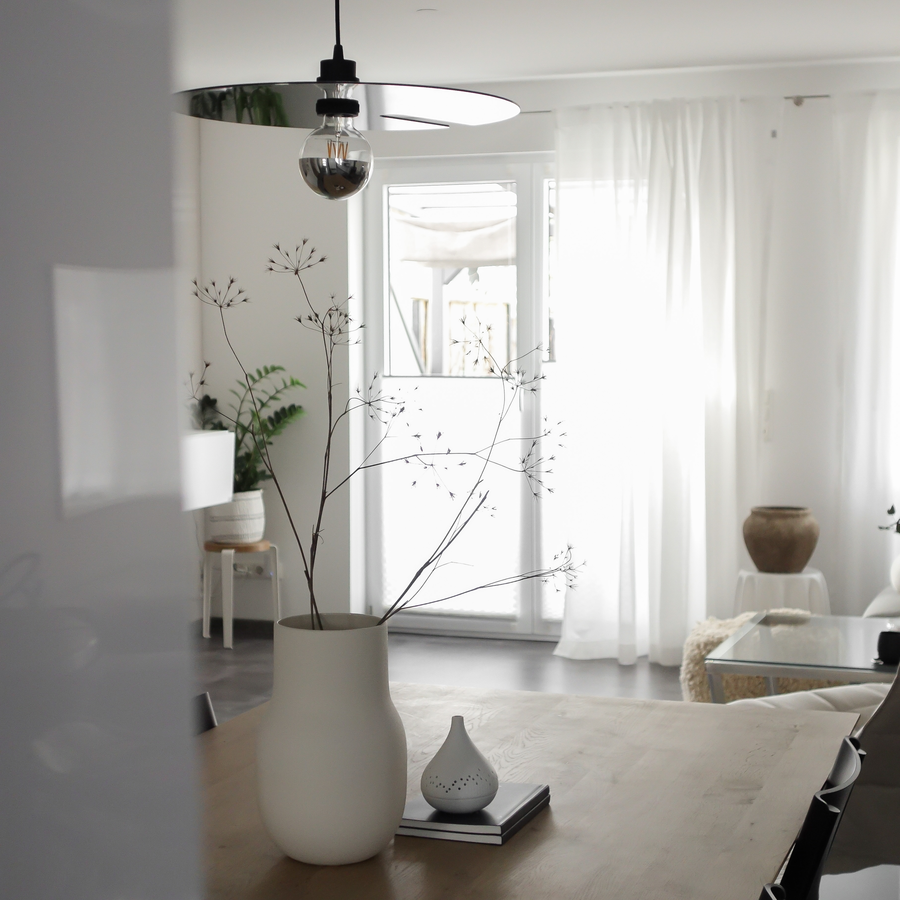 "Look at this beautiful MIRRO 2.0 pendant light from @weverducre hanging above my dining table. The MIRRO COLLECTION is designed by @13and9design and it incorporates a reflecting metallic surface element that resembles a mirror and creates a dynamic relationship between user, luminaire and light. I love the simple round shape above my round dining table and I introduced a matching MIRRO 2.0 floor lamp in my living room as well (have a look in my stories or in today’s blogpost), which makes the look complete."