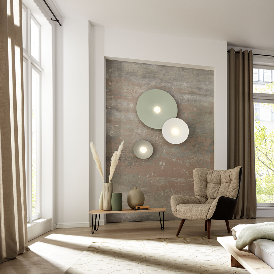 Design is at its best when colour and shape are in perfect harmony. As with the CLEA family, whose circular shade comes in three sizes and various colours. The special feature here is that the shades "Feel Jade" and "Live Simple!" are part of COLORNETWORK®’s "Sustainable Colours”, which is fully committed to the sustainable definition of colour concepts. Entire interiors can thus be designed in the same tone or in matching colour families. It's great that the CLEA family is also part of this philosophy and shares the same inner values. It makes you want to have the beautifully designed lights, whose light sources* emit a particularly soft light, in your home even more. After all, they can be used to create highly decorative highlights on walls and ceilings. Particularly beautiful: CLEA as a discreet single light above the dining table.