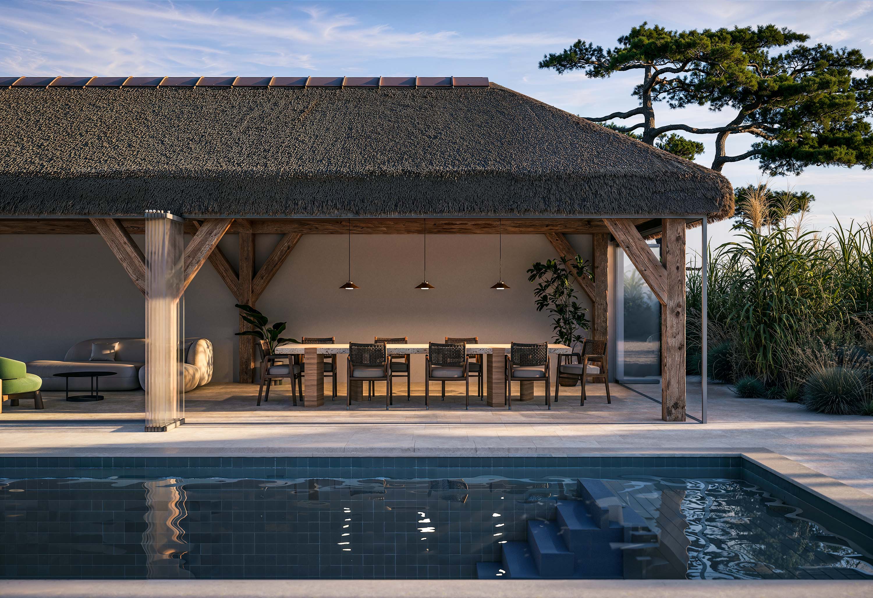 En dehors de la classe de protection IP, il est préférable d’utiliser de préférence un petit nombre de sources lumineuses placées de manière discrète et veiller à ce que la lumière soit douce et de tonalité chaude. En effet, le contraste entre la lumière et l’obscurité est particulièrement perceptible la nuit. Et nous ne sommes pas les seuls à ressentir une lumière trop forte comme désagréable et éblouissante : nos petits voisins qui se tiennent habituellement à l’arrière-plan - les animaux vivant dans les environs - le ressentent également