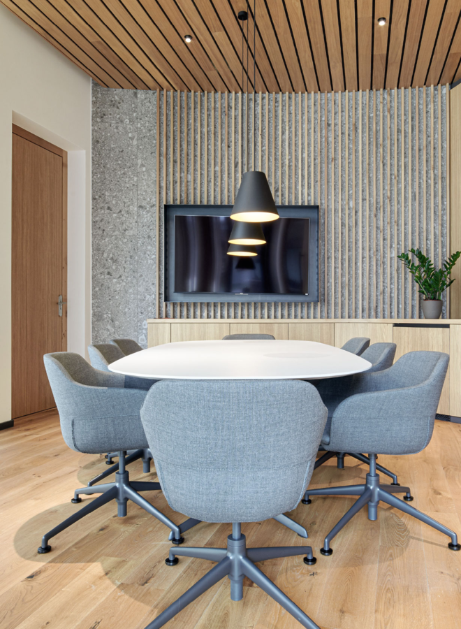 „Le sale conferenze devono andare incontro a molte esigenze: il progetto illuminotecnico va pensato non solo per il design ma anche per la comodità di regolazione. Le scene di luce predefinite supportano le diverse esigenze e contribuiscono a creare un’atmosfera di comunicazione e di conferenza di alto livello.“